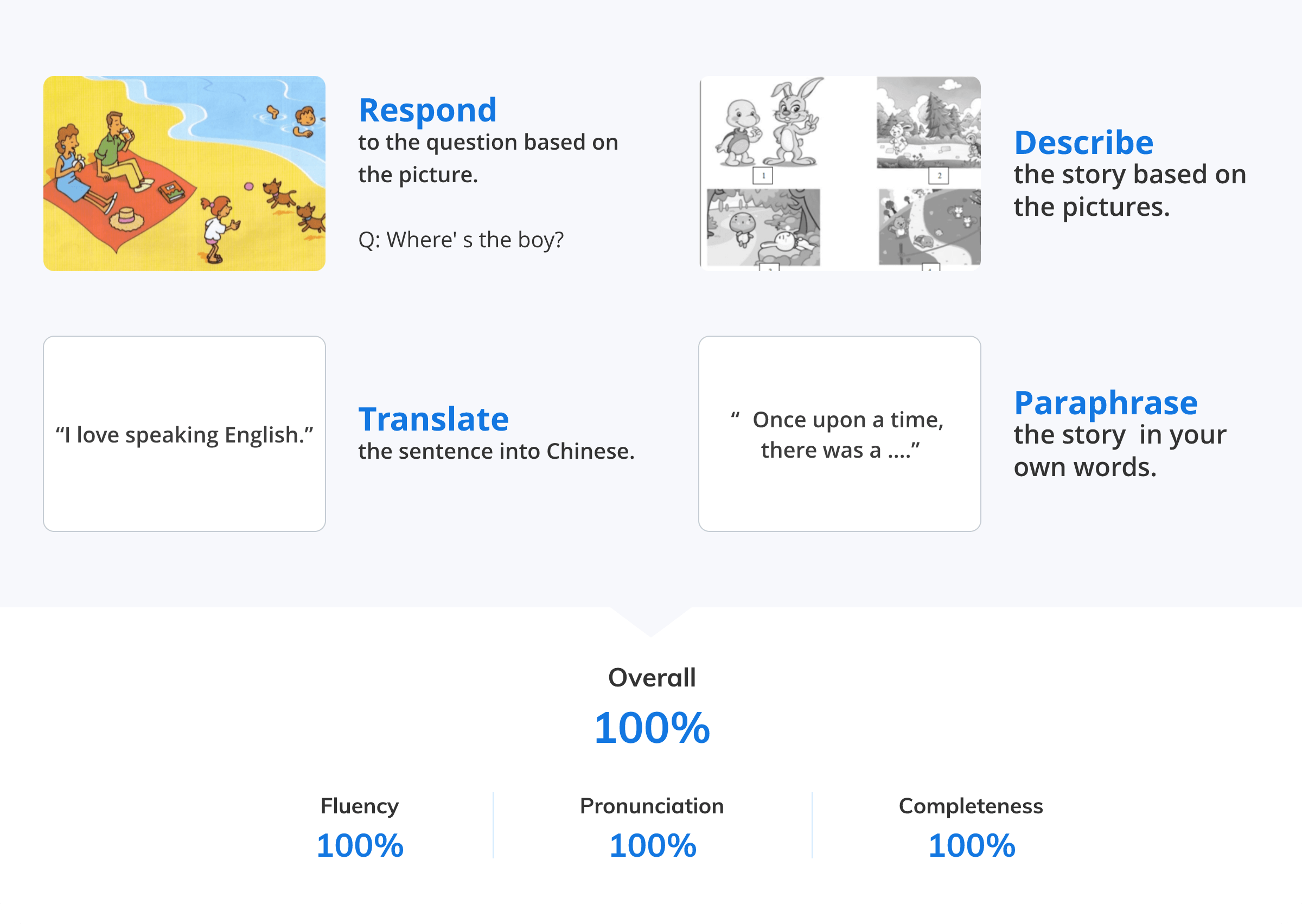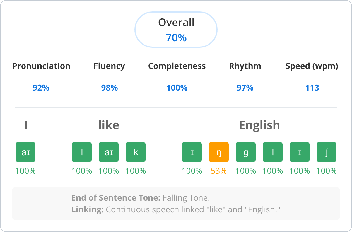 Experience the power of deep learning-powered AI for analyzing spoken data, covering pronunciation, fluency, grammar, and vocabulary.