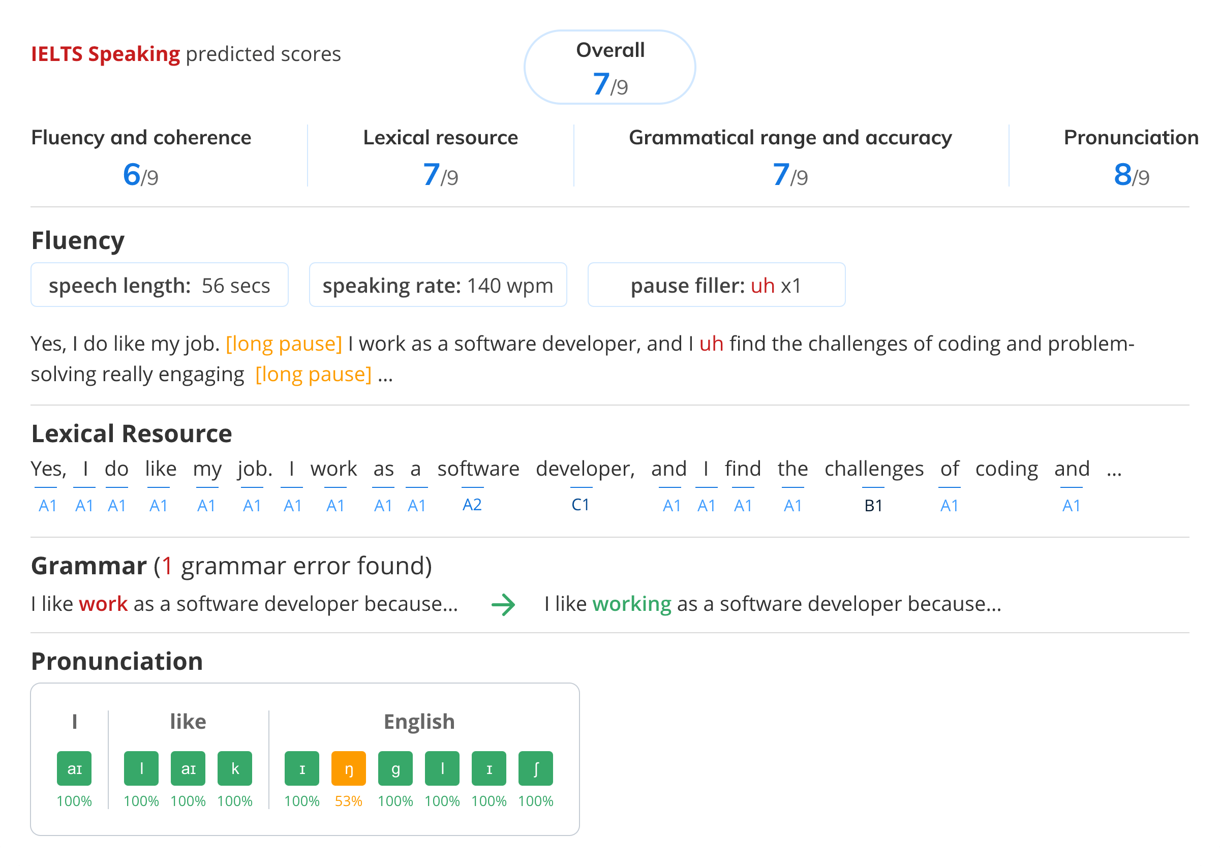 Introducing SpeechSuper's English Spontaneous Speech Assessment API. Transcription, Fluency, Grammar, Vocabulary & Pronunciation Feedback all in 1 API.